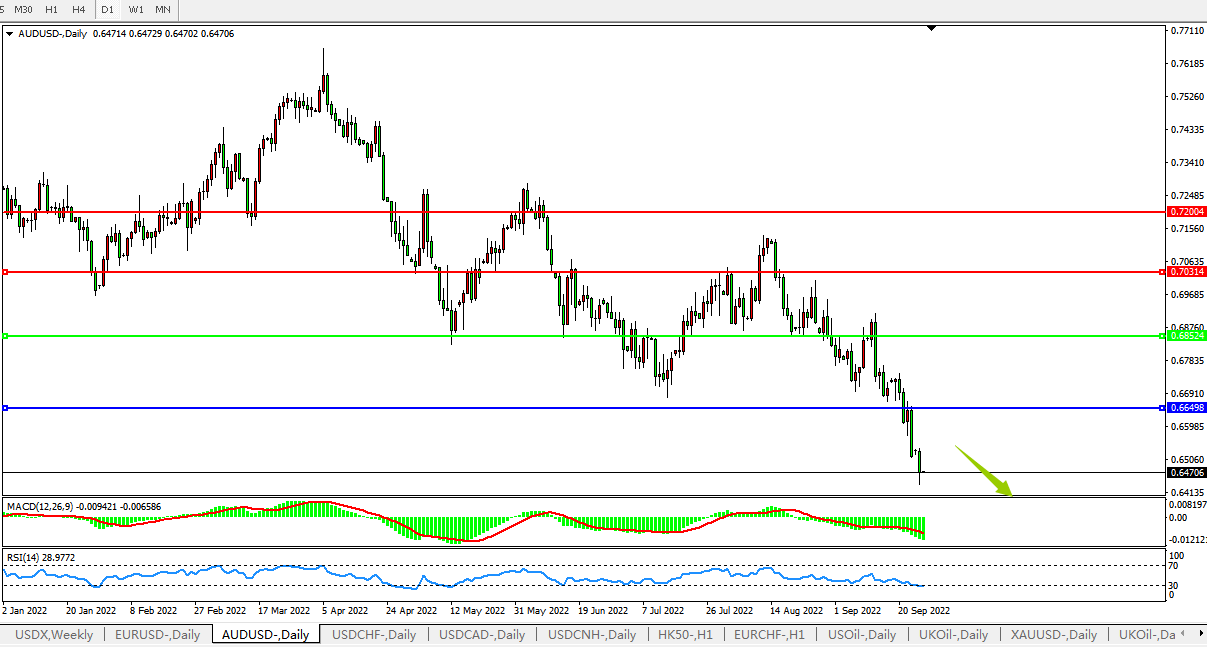 日线图看:短期汇价继续加速下行,MACD运行于0轴下方且量能放量,RSI继续走低,预计汇价大概率将进一步下行。