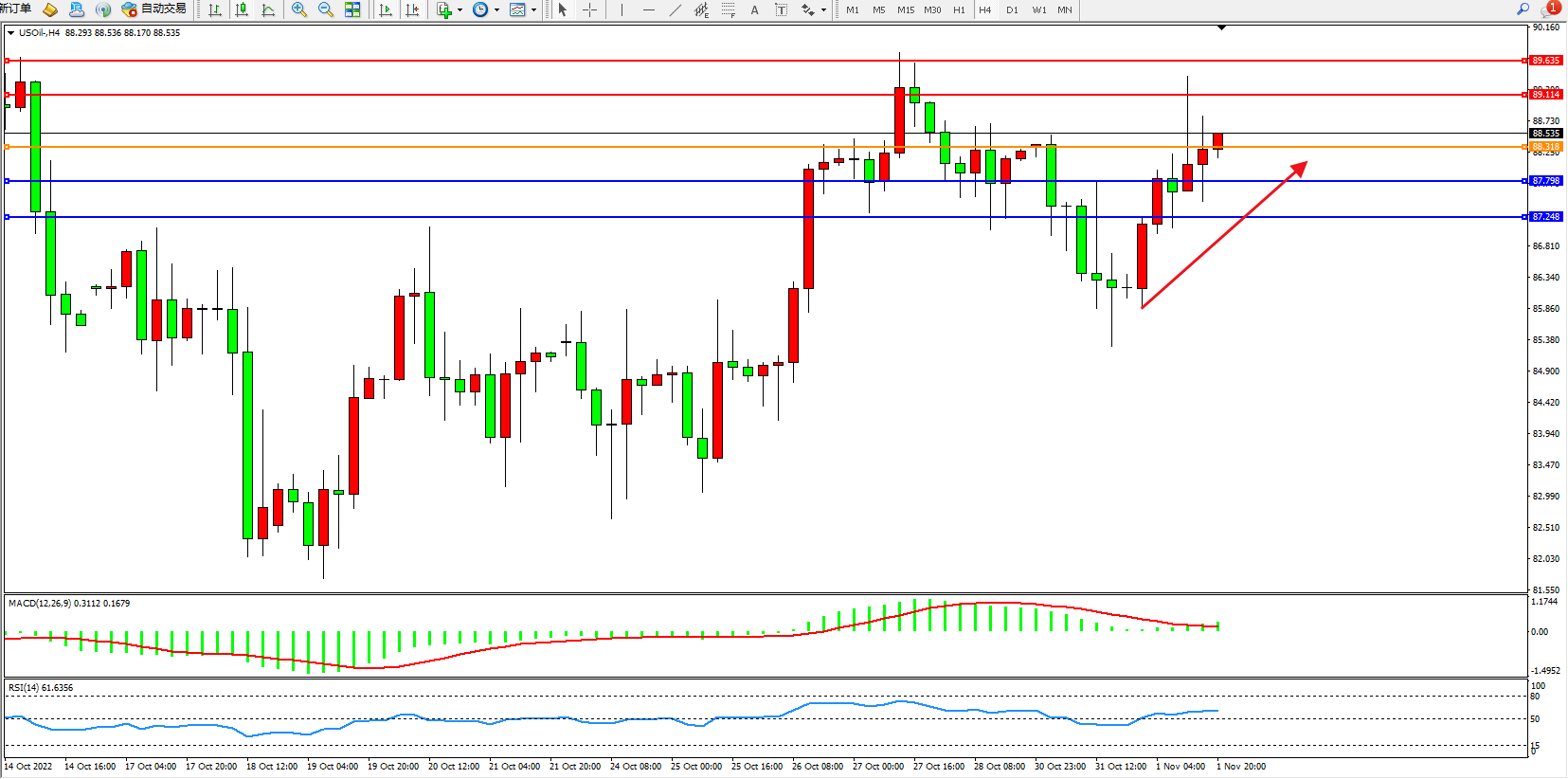 原油维持88.535附近震荡,OPEC《2022年世界石油展望》,上调了全球中长期石油需求的展望。明年全球石油需求将增加到1.03亿桶/天,比2022年增加270万桶/天,比该组织去年预测的数据增加140万桶/天。