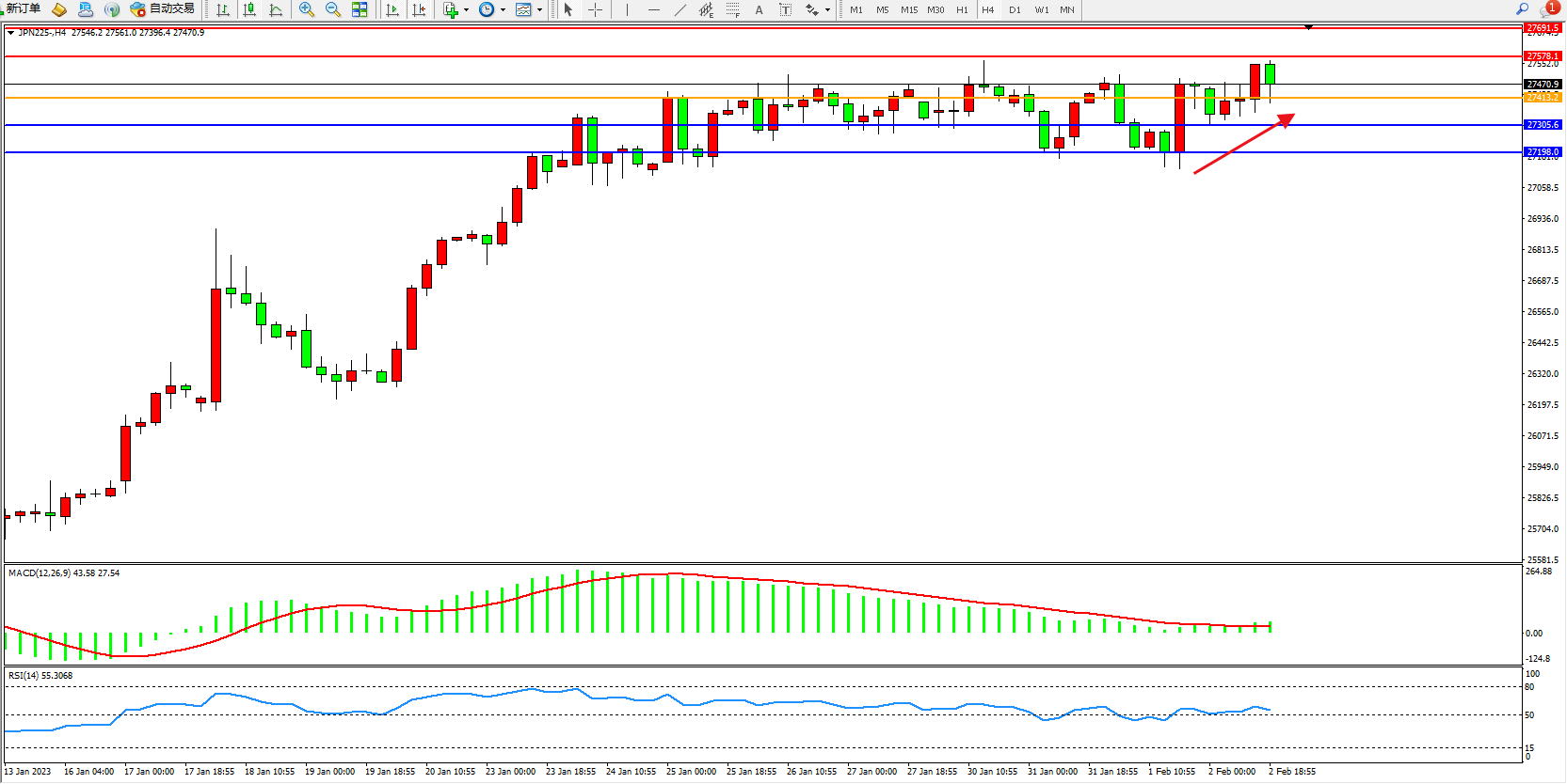 日经225指数2月2日(周四)收盘上涨65.62点,涨幅0.24%,报27412.50点。日本央行副行长若田部昌澄:我们对宽松政策的承诺丝毫没有改变。日本央行现在应该专注于追求当前政策的成功,而不是对其政策框架进行审查。
